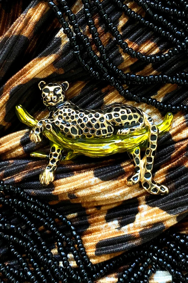 Alibaba Vintage Inspired Black & Gold Leopard Brooch Under $60