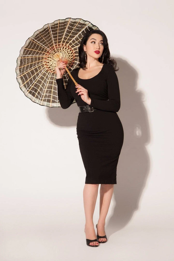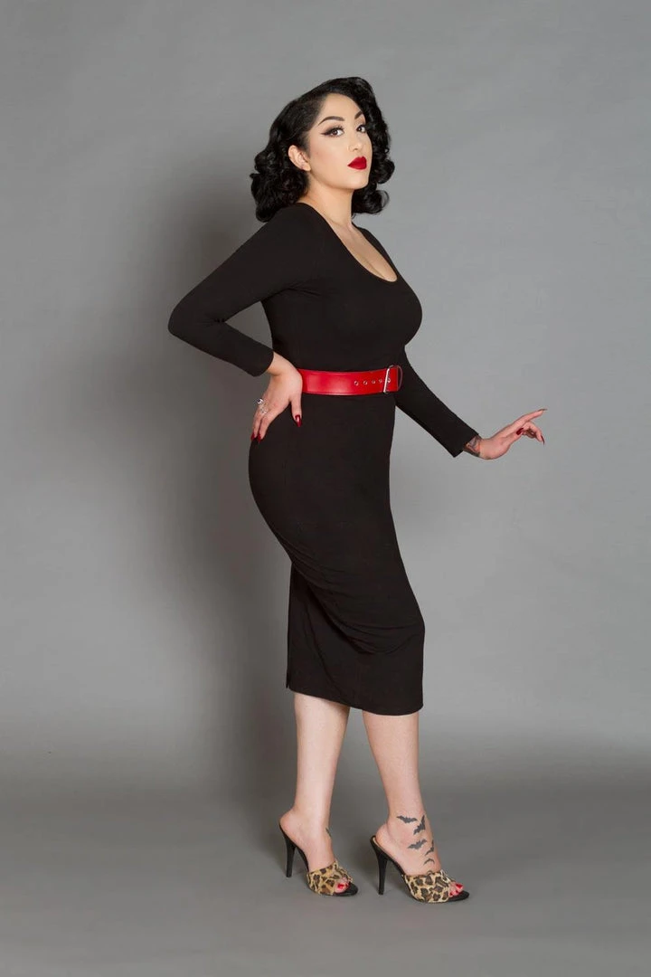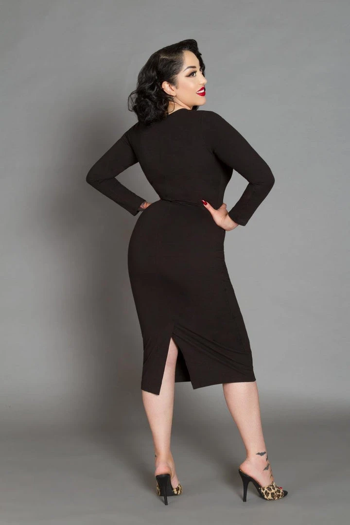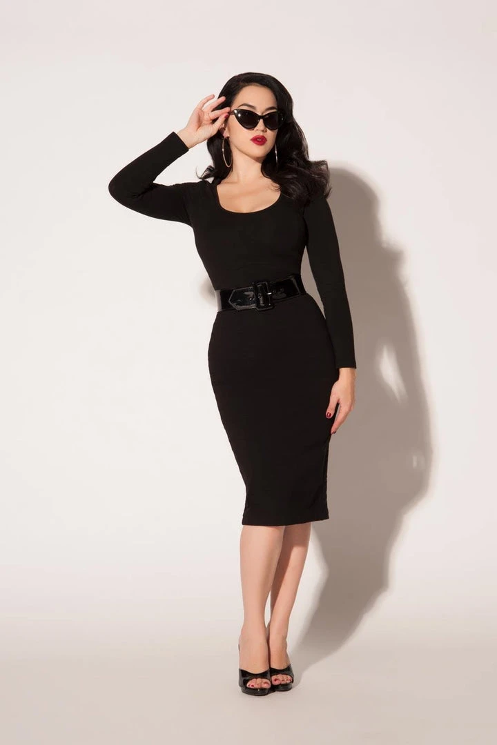 The Hannah Wiggle Dress is made of scuba crepe, featuring a wide scoop neck, and full length sleeves. Designed to hug every curve while being endlessly comfortable, and perfectly cool in hot weather.