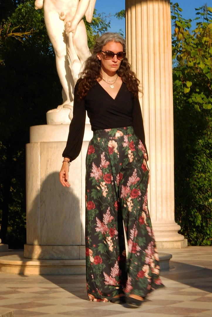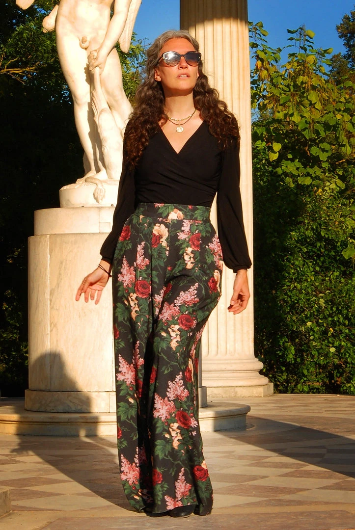 A customer favorite due to the beautiful fit and silhouette they provide, these wide leg pants are made from a high quality crepe that drapes down from tailored pleats. The waistband has elastic in the back (on either side of the zipper) for the perfect fit, and let’s not forget the most important detail – pockets! Sleek, sexy and sophisticated, these pair well with almost any top. 32″ inseam.