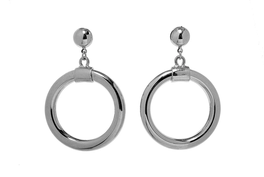 Created exclusively for Pinup Girl Clothing by Elizabeth Claire Taylor, these hoops are described by her as “a modern take on the classic pinup hoops of the 1950’s worn by Hollywood stars worldwide.” This timeless design features paddle back clips perfect for those without pierced ears or for those who just prefer clip-ons. The hoops measure approx 1 ¾” across and 2 ¾” down with a ⅝” post that is slightly larger than the pierced version of this hoop to accommodate the clip-on backing.