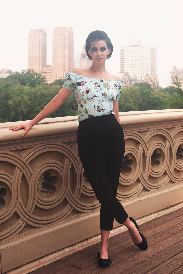 The Pinup Couture Peasant Top is the separate you never knew you needed. Wearable on or off the shoulders, there’s ample room for any size bust, and she’s long enough to tuck neatly into your favorite Bella, but looks just as cute untucked over a pair of Laura Byrnes California Denim Capris. Plus a convenient zipper that stops 1 inch above the hem for easy over–the-head access. Available in an array of colors in an ultra-comfortable sateen that will form to your body with a curved, gathered under-bust seam that will give you all the support you need.
