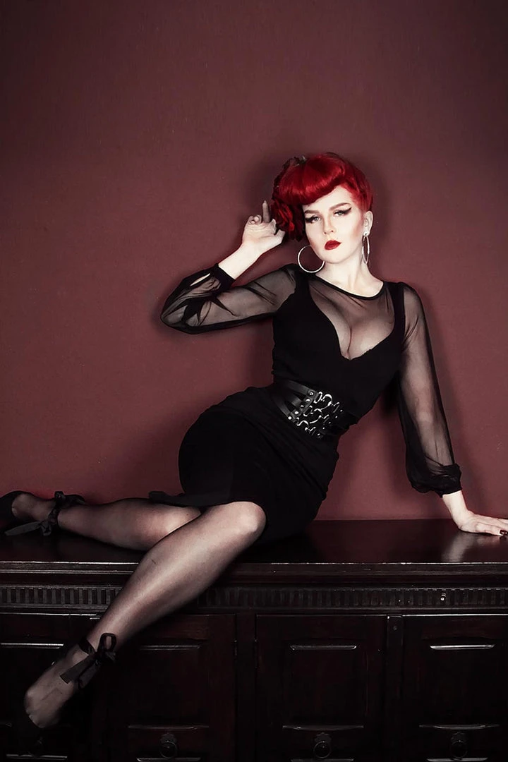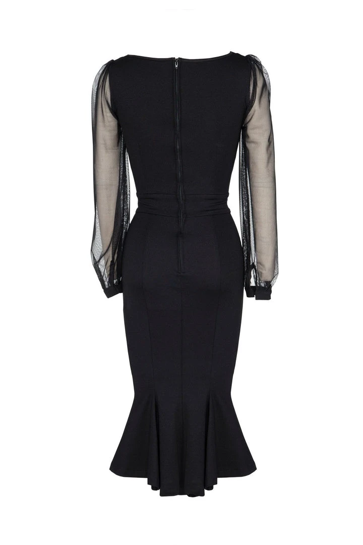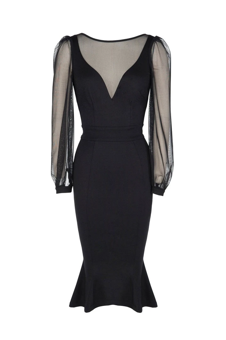 Mila is the body conscious dress you want to wear when you want to be seriously sexy. Ethereal semi-sheer mesh sleeves lend a bit of sweetness while the dangerously flattering V-neckline allows this dress to be worn with your favorite cleavage amplifying bra. Your waist is cinched in with creative seaming while the skirt caresses your curves into a flirty mermaid hem. Finished off with a back zip, this dress is sophisticated, sexy and supremely comfortable; you’ll have heads turning wherever you go.