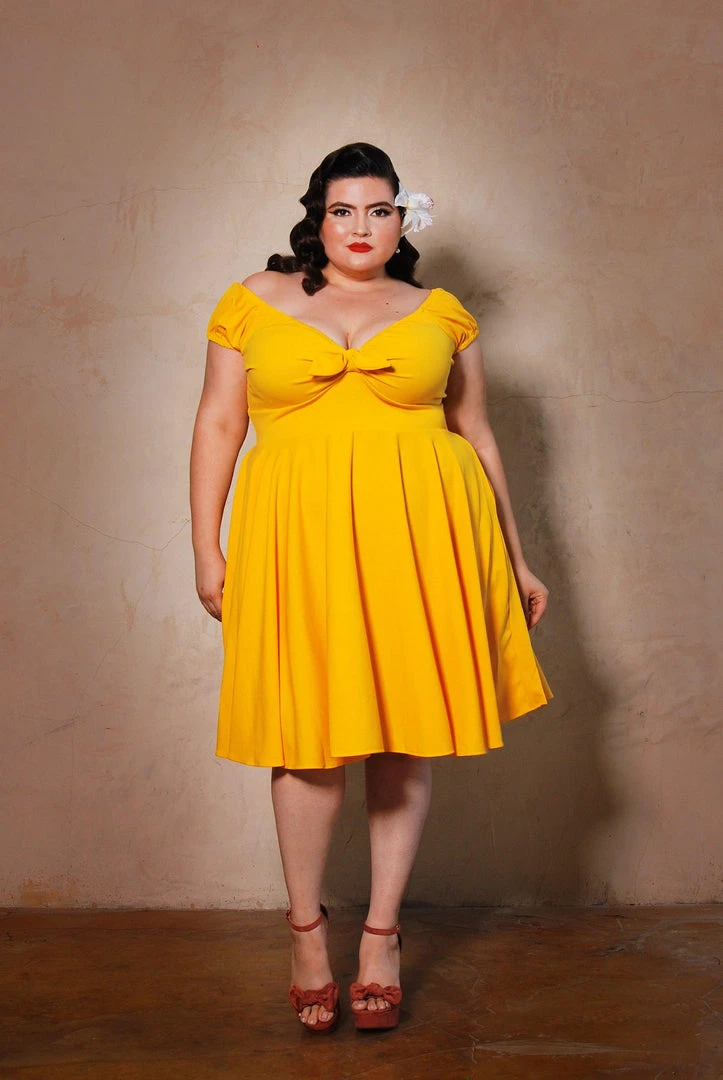 The Natalie is gorgeous, comfortable, and easy to wear! Featuring gathers in the center of the bust-line which accentuate shapes of all sizes and is topped off with an adjustable bow tie for a little more – or less – emphasis on your cleavage. The full skirt is constructed with generous pockets large enough to hold any cell phone.