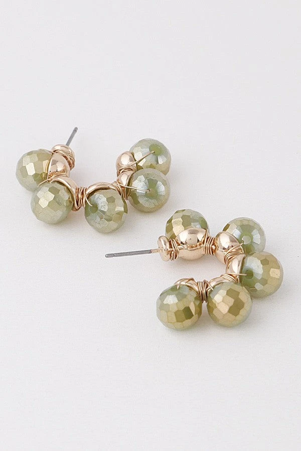Colorful crystal beaded half hoop earrings with stud back detail for comfort.
