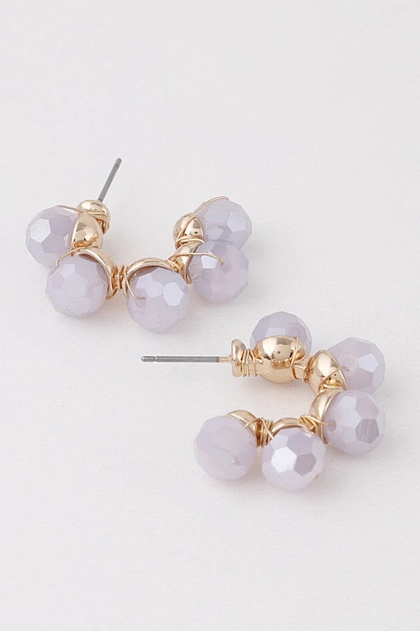 Colorful crystal beaded half hoop earrings with stud back detail for comfort.
