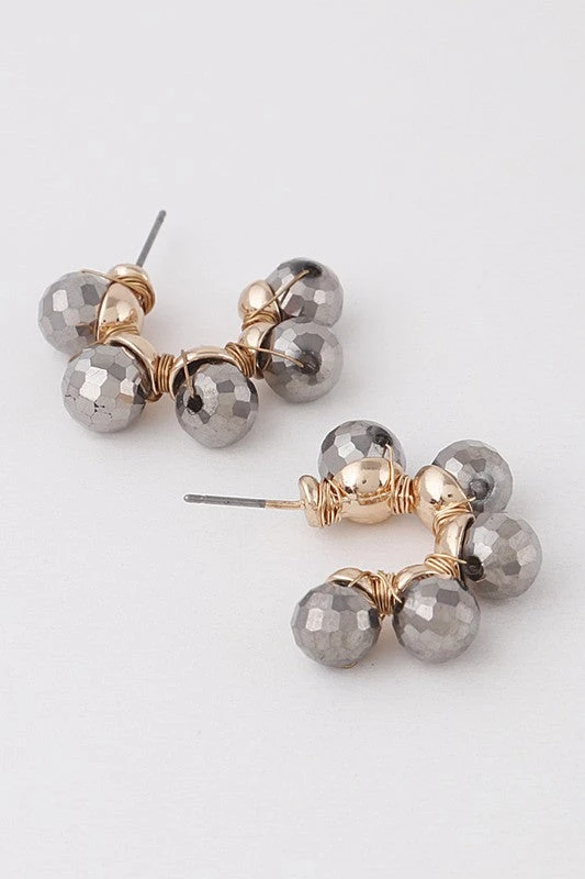 Colorful crystal beaded half hoop earrings with stud back detail for comfort.