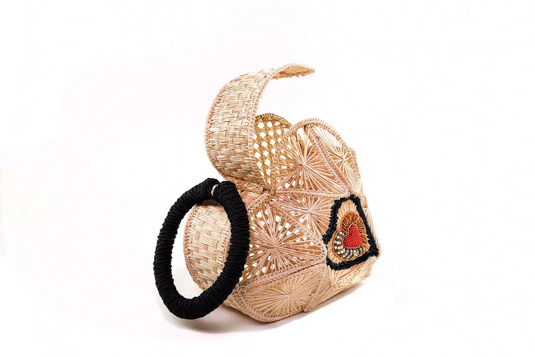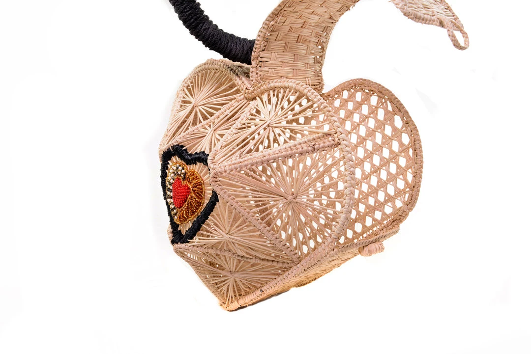 Imported by Pinup Girl Clothing exclusively for you, this hand woven natural raffia heart shaped purse is the special piece your collection has been missing. From a lunch date with the girls to a night out with that special someone, the Sagrado Corazon bag will have everyone gasping, “Where did you get that?”