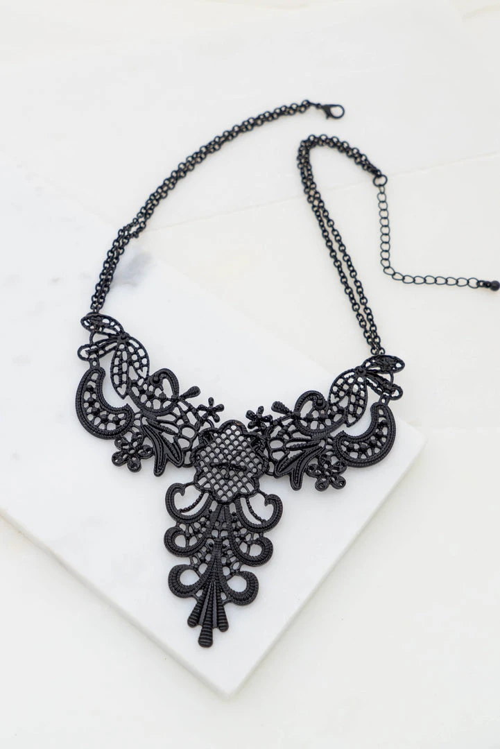 LA3Accesories What’s New, Pussycat? Night Falls Filagree Necklace In Black