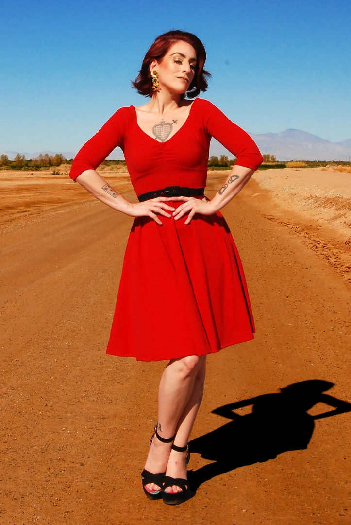 The Kayla Dress is as soft, stretchy and flattering as her sister separate she originated from. Kayla features a fitted bodice with gathers at the bust, a slightly gathered full skirt with an elasticized waistline, and 3/4 length sleeves. If your 9-to-5 job is more casual, this dress is ideal for a long day at the office. Or keep her in your car for a quick change when you clock out for the day because she barely wrinkles! She will be a favorite style for those weekend getaways or make those boring adult errands a little more fun without compromising your style.