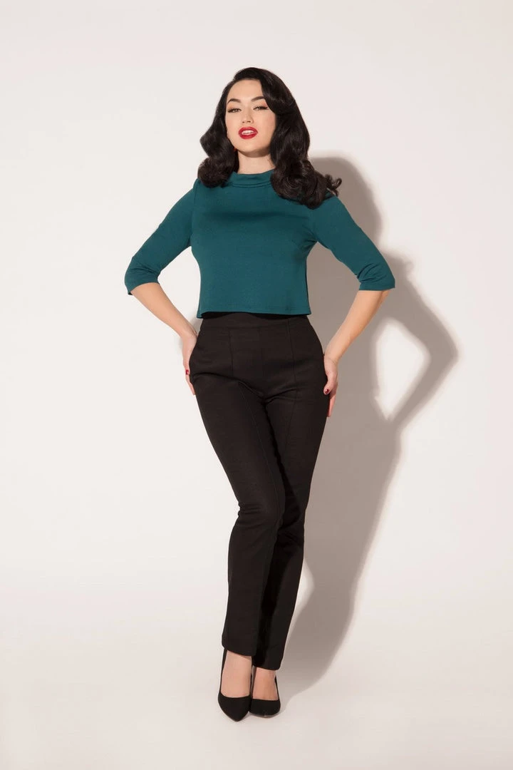 A timeless separate from Laura Byrnes Design, the Long Trousers return with a studious and chic upgrade in this high quality twill. These Long Trousers feature a high Empire waistline with a subtle curve that flatters every figure and elastic ruched panels on the back to allow for the perfect sag-free fit without sacrificing comfort. Complete with side slit pockets and a 29.5″ stitched inseam, these practical pants will bring sophisticated style to your workwear to nighttime wardrobe all year round.