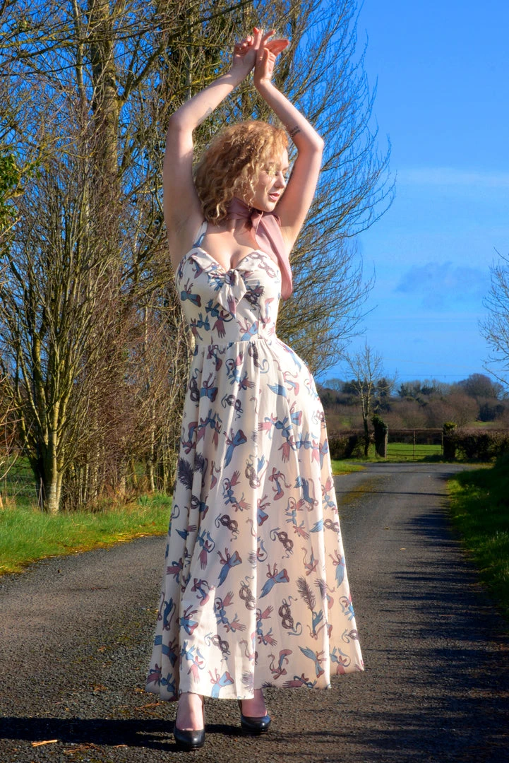 Ships by end of June. Meet the Linda Maxi, your new favorite dress with a little something extra special. The perfect blend of beauty and comfort, this dress is made from our breathable poly crepe, features an adjustable tie at the bust with keyhole detail, curve hugging seams, and is elasticized at the back with a full zip for extra all day ease of wear. And yes, she has pockets. Now available in our exclusive Crown print.