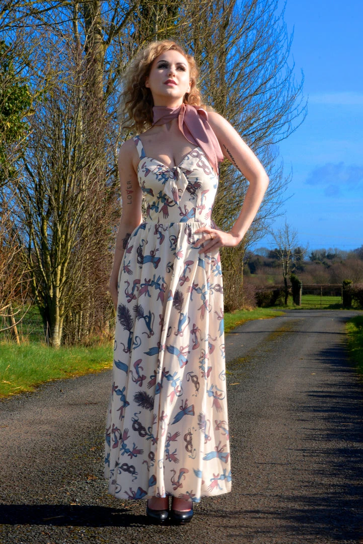 Ships by end of June. Meet the Linda Maxi, your new favorite dress with a little something extra special. The perfect blend of beauty and comfort, this dress is made from our breathable poly crepe, features an adjustable tie at the bust with keyhole detail, curve hugging seams, and is elasticized at the back with a full zip for extra all day ease of wear. And yes, she has pockets. Now available in our exclusive Crown print.