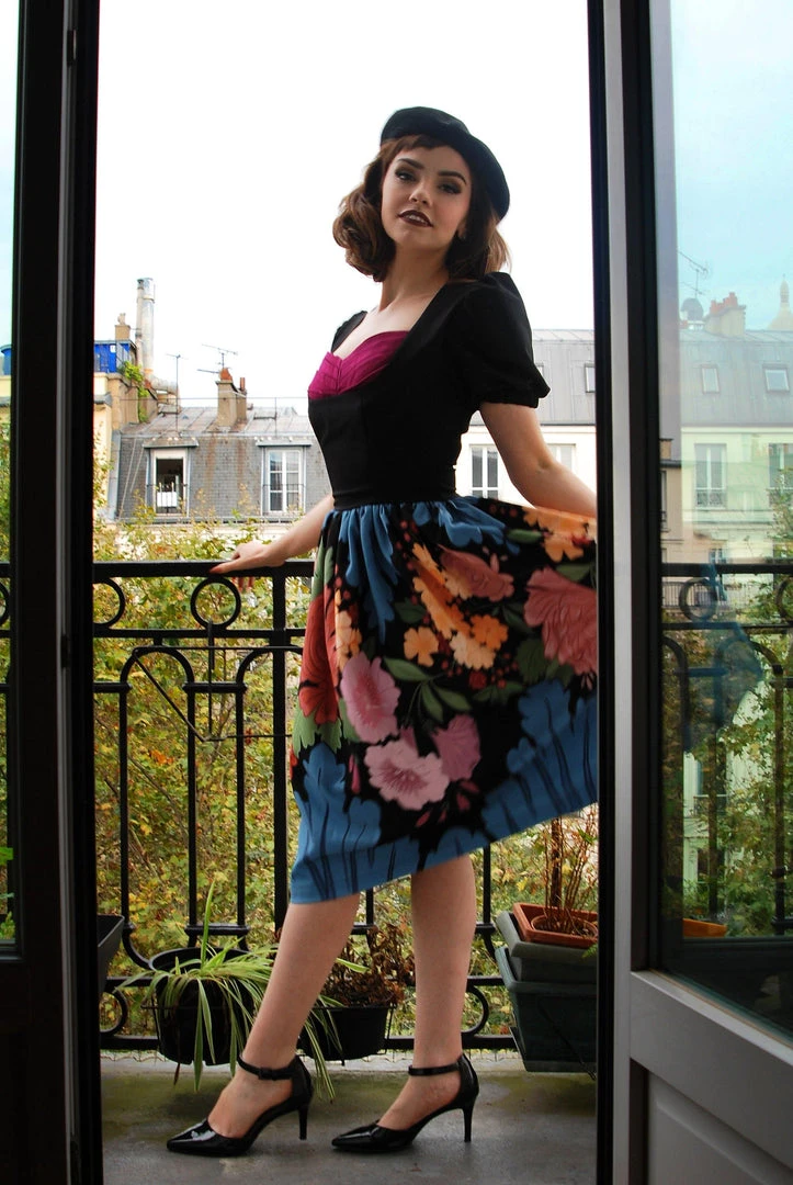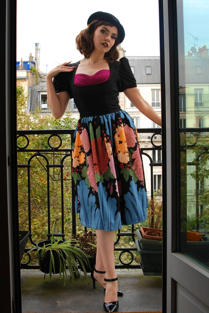 With a full sweeping skirt, peek-a-boo gathered bust detail in Baton Rouge, and sweet puffed sleeves, the Alfreda is an instant classic. Made from the highest quality stretch gabardine, zips up the back, and of course, pockets.
