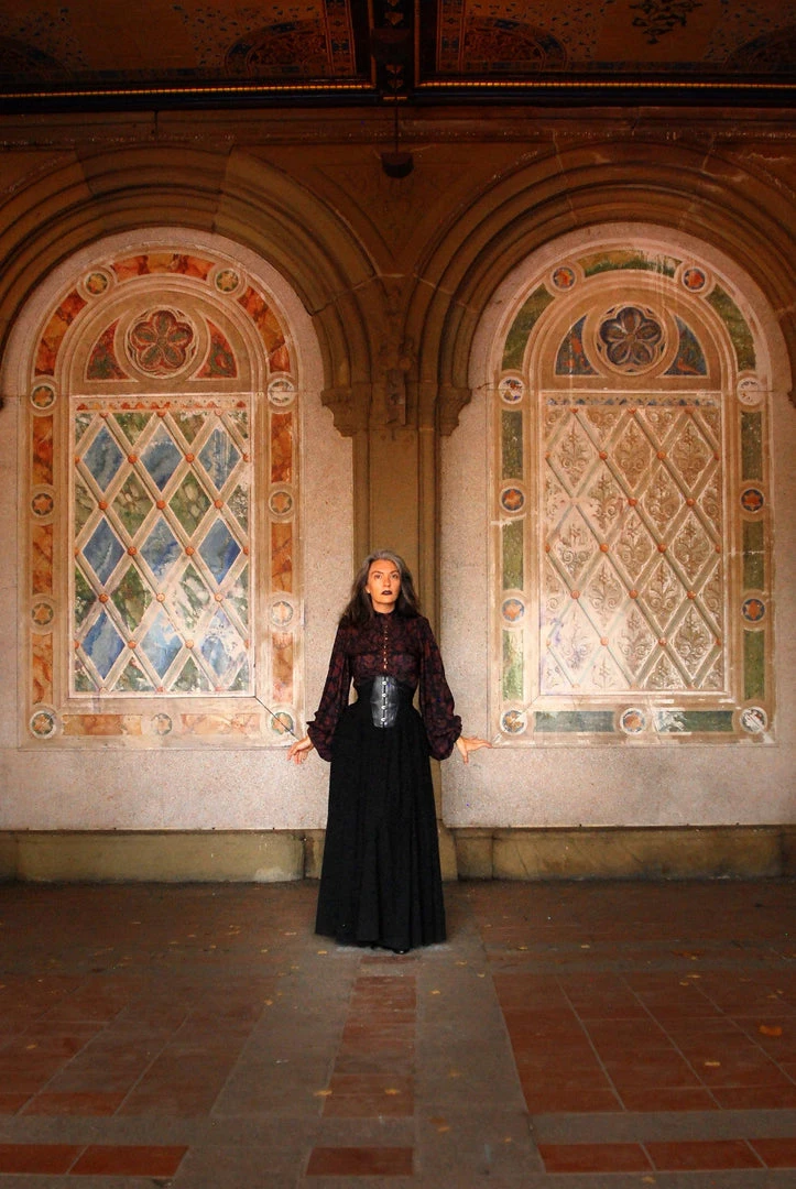 Slip into something a little wicked with the Serafina Top. Featuring a row of buttons that accent a high collar, dramatic bishop sleeves, and a back zip.