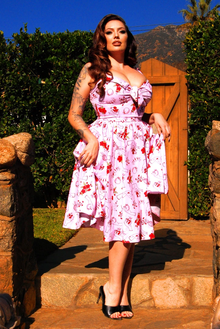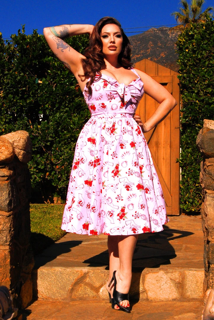 Meet Linda, your new favorite sundress with a little something extra special. The perfect blend of beauty and comfort, this dress is made from our breathable poly crepe, features an adjustable tie at the bust with keyhole detail, curve hugging seams, and is elasticized at the back with a full zip for extra all day ease of wear. And yes, she has pockets. Our exclusive Spring Persephone print is a celebration of the power of femininity.