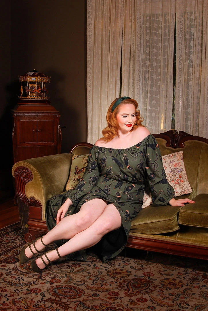 Created by designer Laura Byrnes and artist Hope Morrison, we present you the Selene Midi Skirt. This skirt is something truly magical, fully lined in a stretch crepe material, and featuring a buttoned front, a back elastic band, and pockets. Skirt is midi length, designed to sit at the lower calf for humans 5’10” and taller, and at the ankle for humans 5’7″ and shorter.