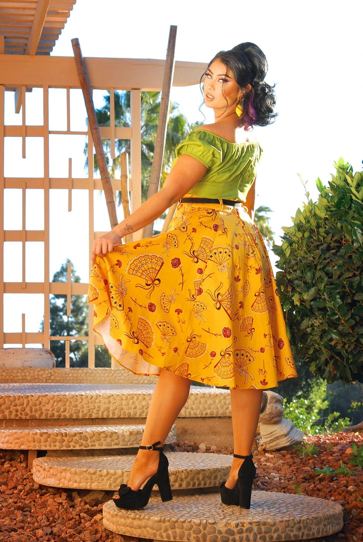 The Doris skirt is a elegant swing skirt with a full sweep and no gathers or pleats. However, it’s the 21st century, so this skirt has deep pockets. Designed as a callback to the true circle skirts of the 1950’s, It has a nipped in waistband, a back zipper, deep pockets, and loops for a wide belt. Made from stretch gabardine.