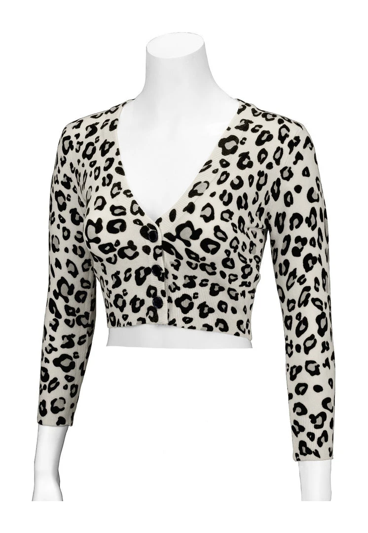 MAK / YeMak Deadly Pinup 3/4 Sleeve Cropped Cardigan In Leopard Print | Pinup Girl Clothing Shop All In-Stock Items By Size