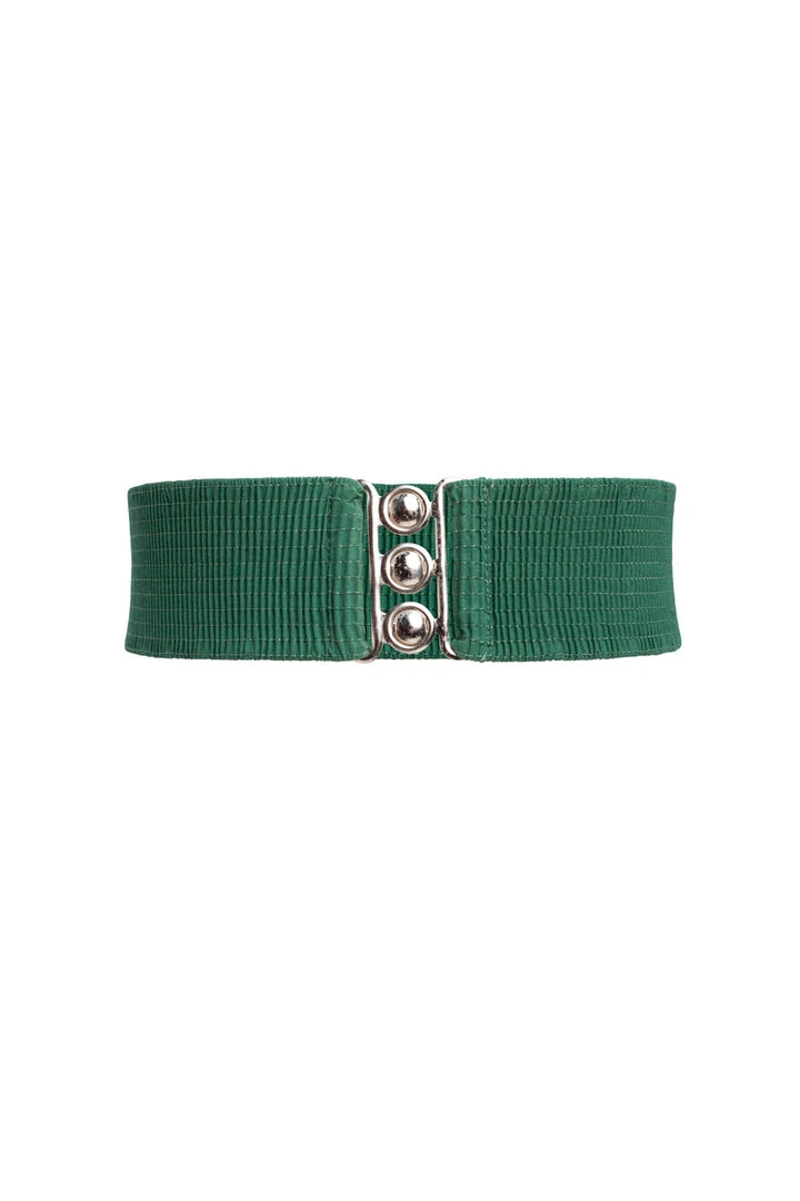 This quintessential vintage belt is virtually unchanged from its heyday in the early 50s. Still made here in the USA by Malco Modes, the Lock It In Stretch Belt features a 100% Cotton shell over an elastic core, and a metal clasp closure. The thick, high-quality stretchy elastic is comfortable, versatile and will keep its shape for years – and looks amazing with any retro, pinup or vintage look.