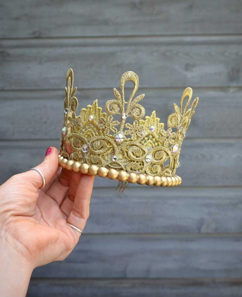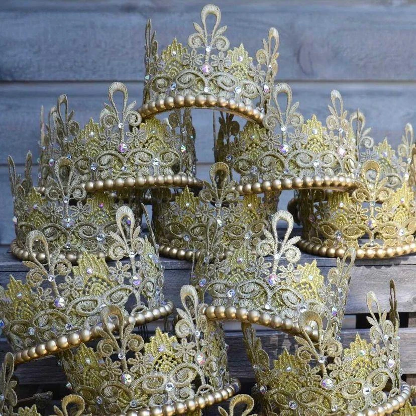 From the creator of the Bella Marie Halo Crown comes another beautiful, hand-made piece of wearable art. The Mary Elizabeth crown stands 3.5″ tall and is made of starched, gold lace decorated with glittering gems. Combs on either side help secure the crown to any hairdo while the bendable frame makes it easy to adjust to different head sizes. Exclusive to Pinup Girl Clothing, this crown by Scarlet Harlow is pure royalty and sure to put all eyes on you.