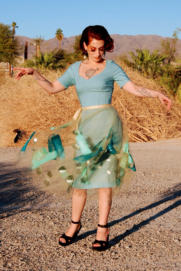 The perfect layering piece, our Isabella Skirt is made from soft tulle, with beautiful hand painted details. Wear her over a contrasting wiggle, layer with a similar swing, or even throw it on with your favorite bathing suit for a chic poolside moment.