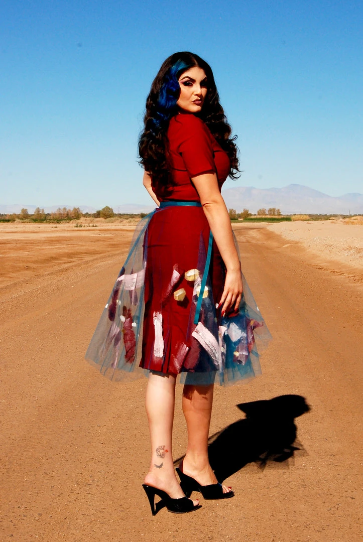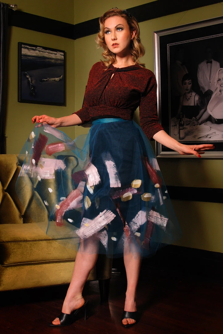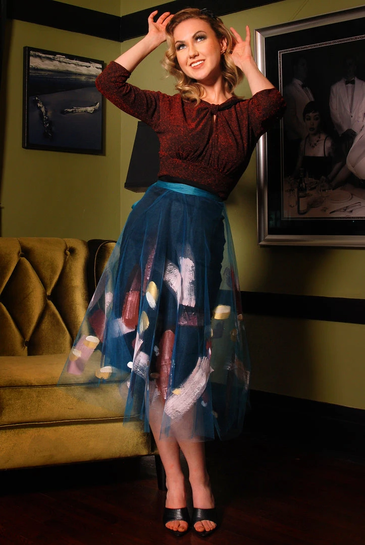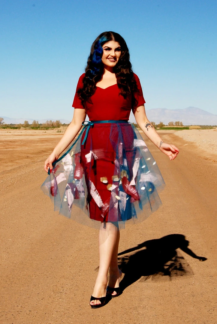 The perfect layering piece, our Isabella Skirt is made from soft tulle, with beautiful hand painted details. Wear her over a contrasting wiggle, layer with a similar swing, or even throw it on with your favorite bathing suit for a chic poolside moment.