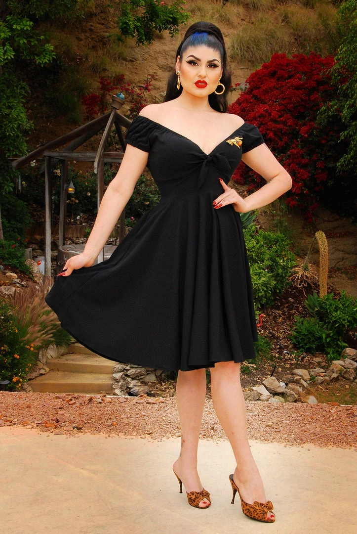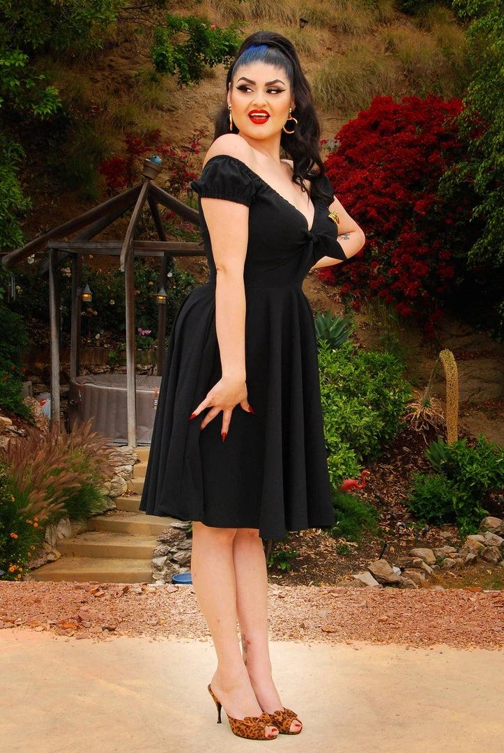 The Natalie is gorgeous, comfortable, and easy to wear! Featuring gathers in the center of the bust-line which accentuate shapes of all sizes and is topped off with an adjustable bow tie for a little more – or less – emphasis on your cleavage. The full skirt is constructed with generous pockets large enough to hold any cell phone.