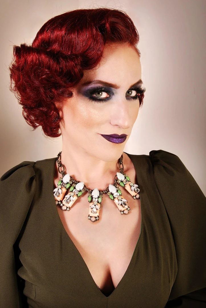 Deco meets Nouveau. Opulence meets bohème… All in this statement piece inspired by the Arts Décoratifs that first appeared in France in the early 1900’s and colors that spring to mind the artwork of Alphonse Mucha. The perfect match for any jewel-toned holiday look.
