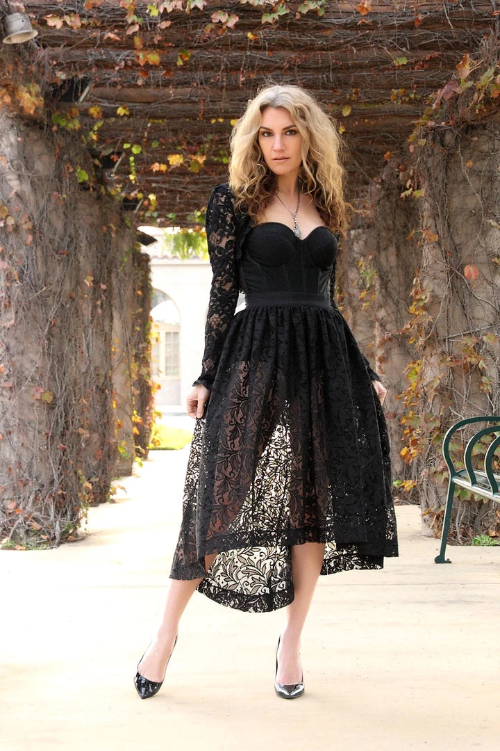 Size XS & S OYS Bella High-Low Skirt in Black Lace