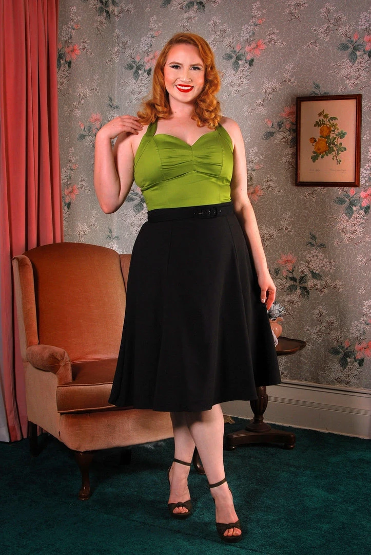 This gorgeous, cotton sateen separate is the perfect vintage inspired summer top.With a flattering sweetheart neckline and thick straps that cross in the back, you can rock this baby all day and night. Worn here with the Vintage Perfect Pencil Skirt in Black and White Floral.