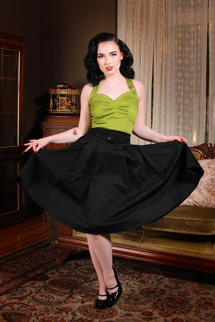 This gorgeous, cotton sateen separate is the perfect vintage inspired summer top.With a flattering sweetheart neckline and thick straps that cross in the back, you can rock this baby all day and night. Worn here with the Vintage Perfect Pencil Skirt in Black and White Floral.