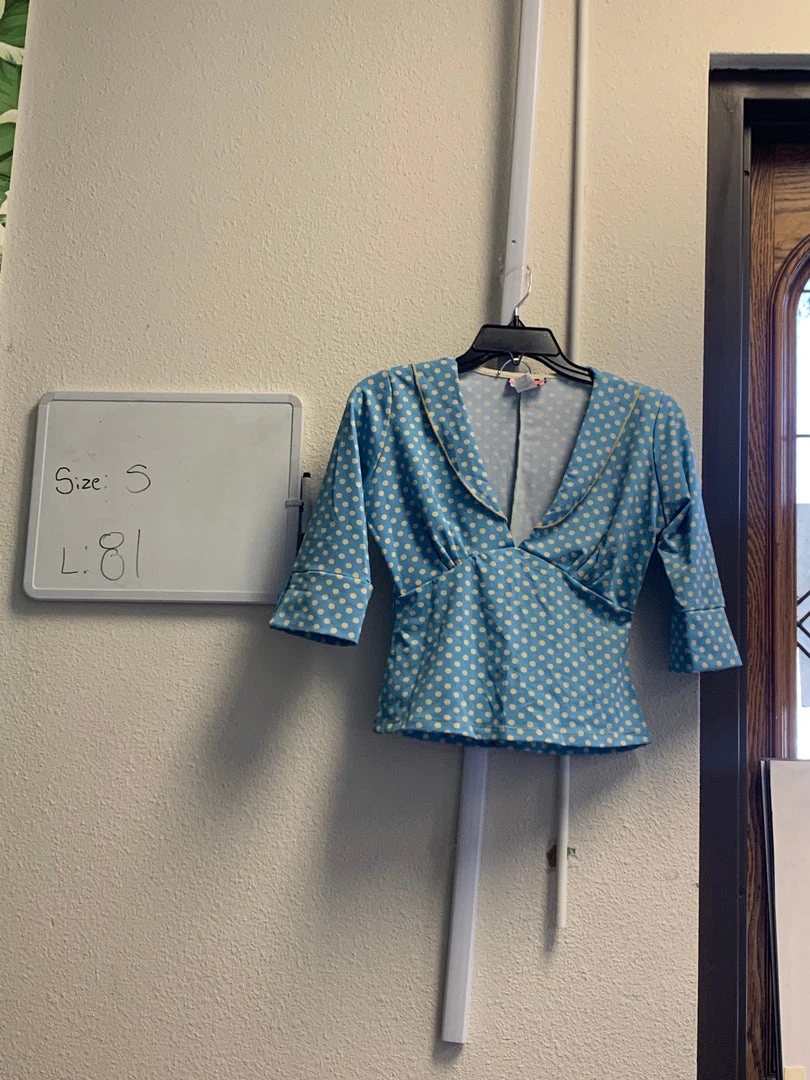 OYS Blue Polkadot Collared Top