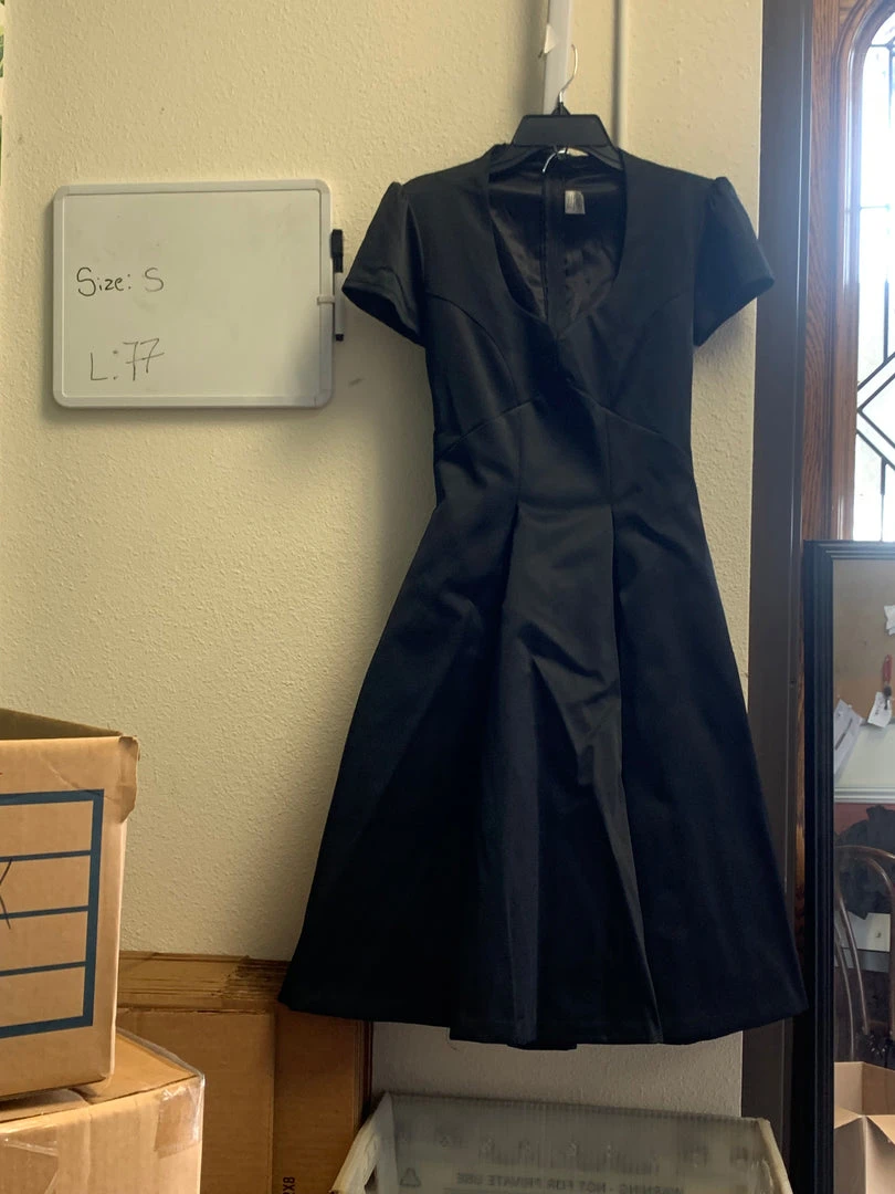 Notes: This dress is marked as Small, but fits closer to an XS, and the structured fabric has very little stretch
