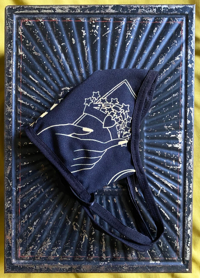 Mask is style #8. This set of four fabric masks measure 8″ x 5″ and covers the top of the nose down to underneath the chin. Fabric is 97% cotton, 3% spandex cotton sateen. Mask is made with an inside pocket to hold a filter. Mask can be worn over an n95 mask to extend its use. Change masks after 4 hours of wear. Machine wash cold and dry low before use.