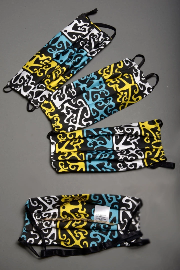 This set of four fabric masks measure 7 1/2″ x 3 1/2″ flat, and when worn will open to 7 1/2″ x 6″ and covers the top of the nose down to underneath the chin. Fabric is 97% cotton, 3% spandex cotton sateen. Mask is made with an inside pocket to hold a filter. Mask can be worn over an n95 mask to extend its use. Change masks after 4 hours of wear. Machine wash cold and dry low before use.