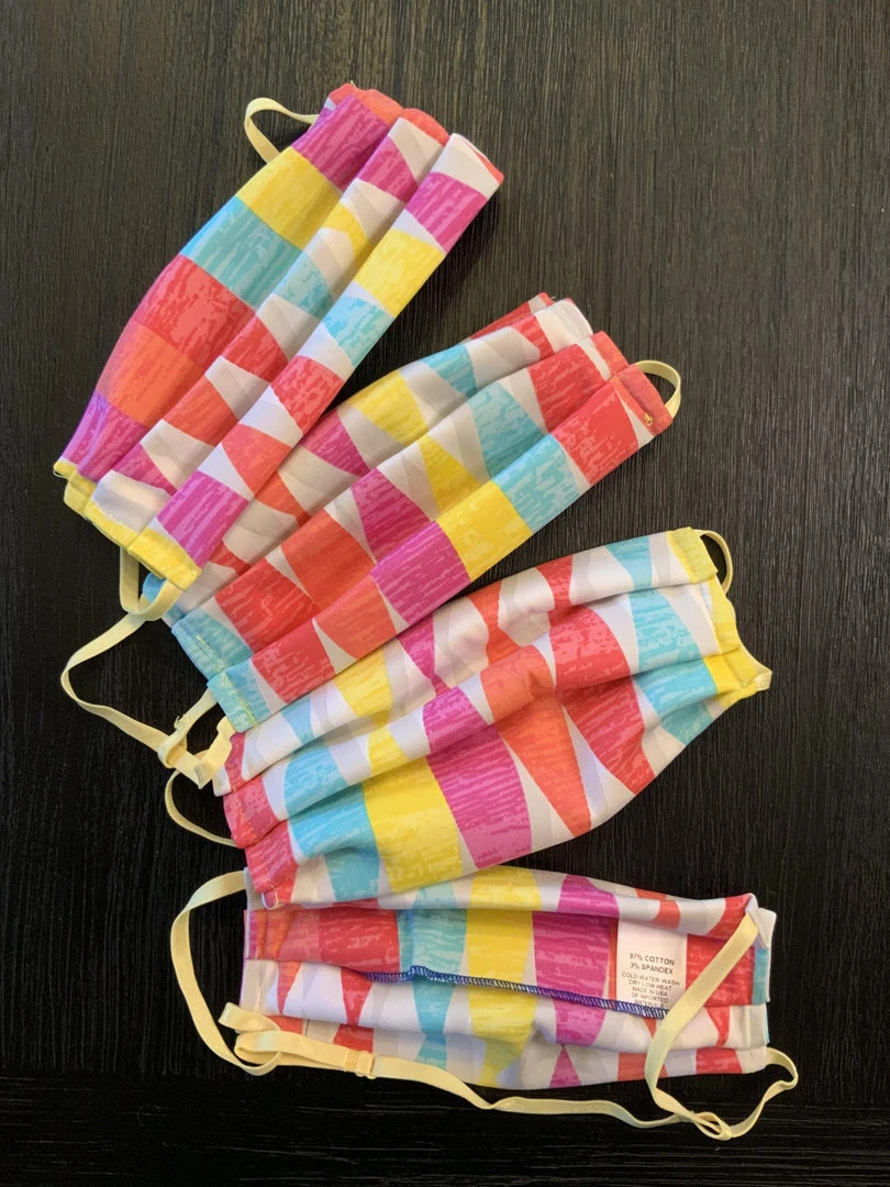 Style #7 is identical to Style #5, except for coordinated color elastic. This colored elastic costs more so this set is $4 more expensive than Style #5. This set of four fabric masks measure 7 1/2″ x 3 1/2″ flat, and when worn will open to 7 1/2″ x 6″ and covers the top of the nose down to underneath the chin. Fabric is 97% cotton, 3% spandex cotton sateen. Mask is made with an inside pocket to hold a filter. Mask can be worn over an n95 mask to extend its use. Change masks after 4 hours of wear. Machine wash cold and dry low before use.