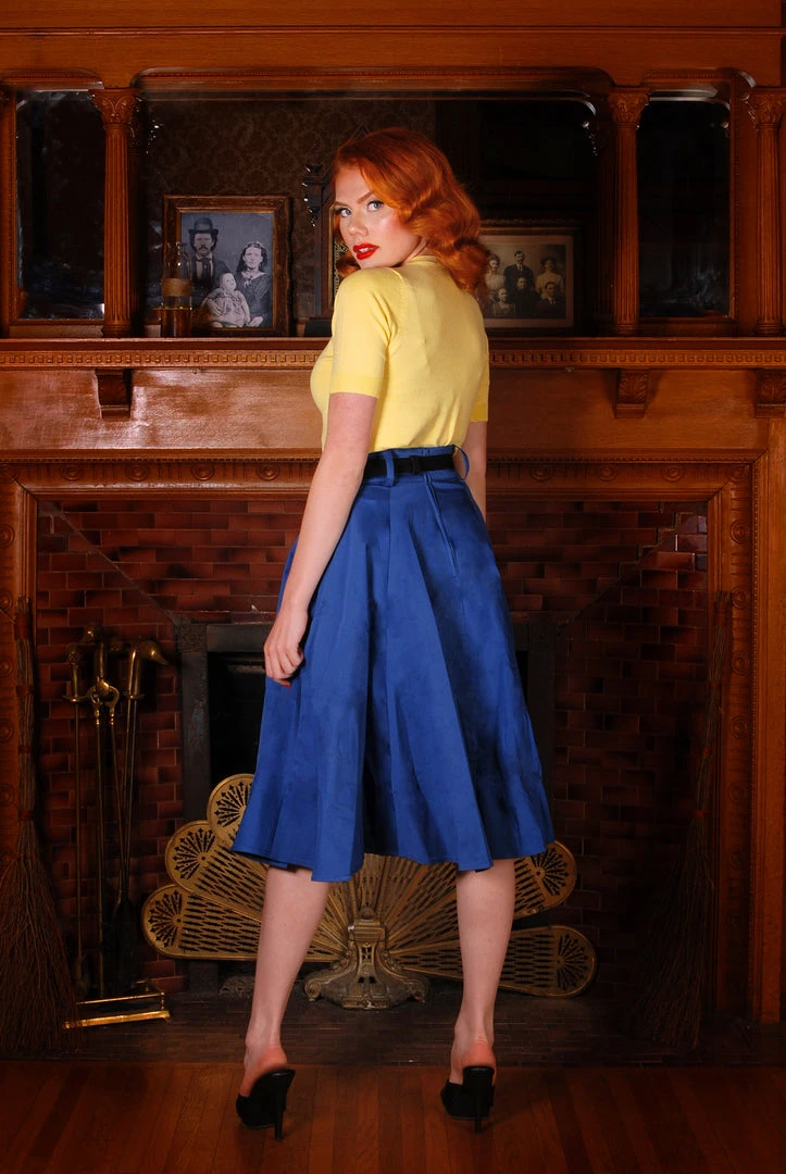The Doris skirt is a elegant swing skirt with a full sweep and no gathers or pleats. However, it’s the 21st century, so this skirt has deep pockets. Designed as a callback to the true circle skirts of the 1950’s, It has a nipped in waistband, a back zipper, deep pockets, and loops for a wide belt. Made from the highest quality, heavyweight cotton sateen. If you’re looking for that added oomph under, we suggest our Twill Underskirt.