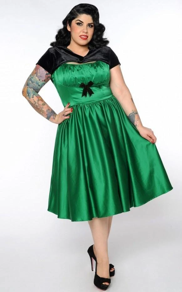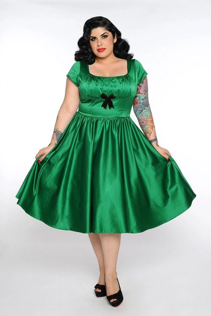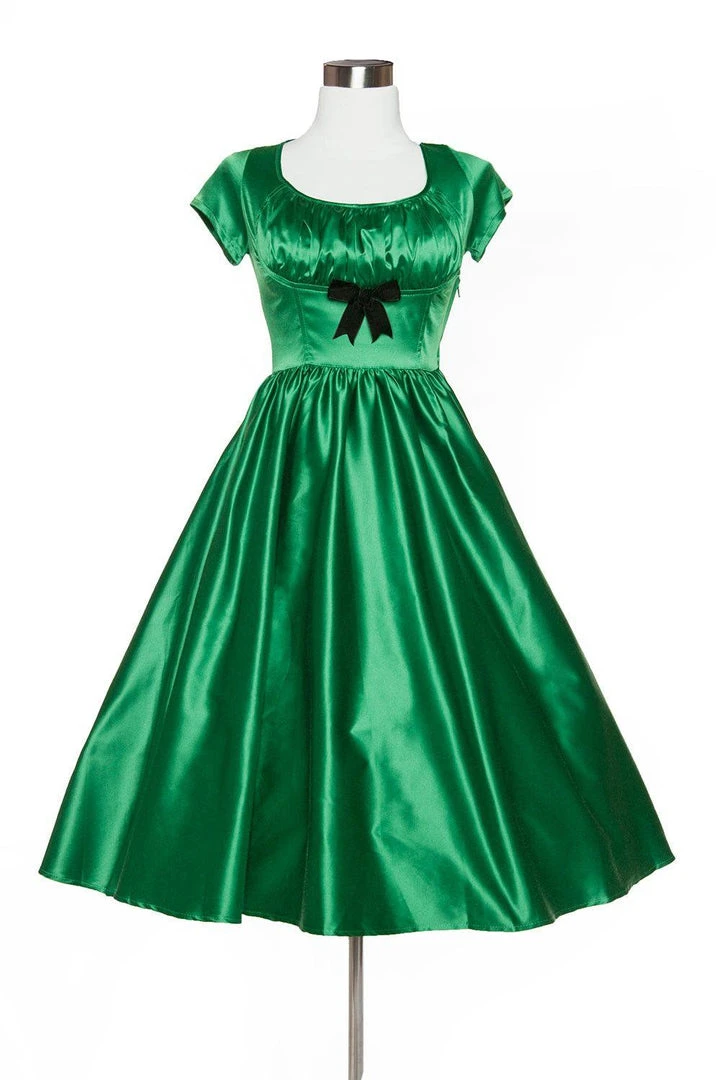 Shop All In-Stock Items By Size Final Sale – Evelyn Vintage Cocktail Dress In Green Bridal Satin | Pinup Couture