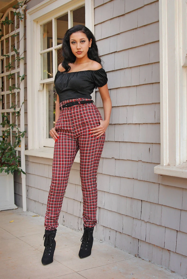 These perfectly tailored high waisted trousers feature an empire waistline (with a subtle curve at the top) and elastic panels at back, to insure a perfect comfortable fit at both your hips and waist. Side pockets, back zip, and tapered to the ankle. These trousers will quickly become your most reached-for every day piece, as you’ll find they work for nearly any setting, be it work or play.