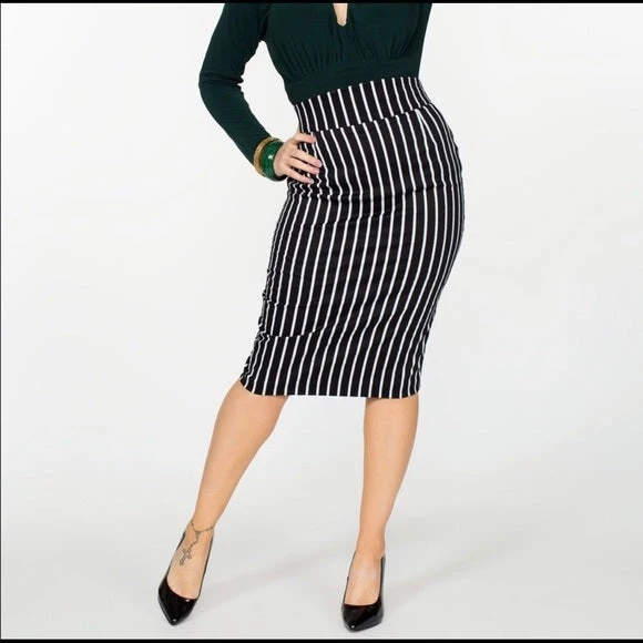 This sexy, curve-hugging skirt has a high waist with a 2″ wide curved yoke and a provocative 10″ back slit and is finished off with a back zip. Made from a high quality cotton sateen.