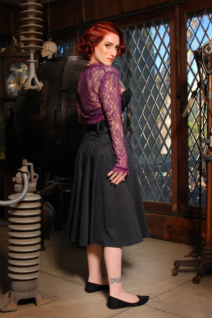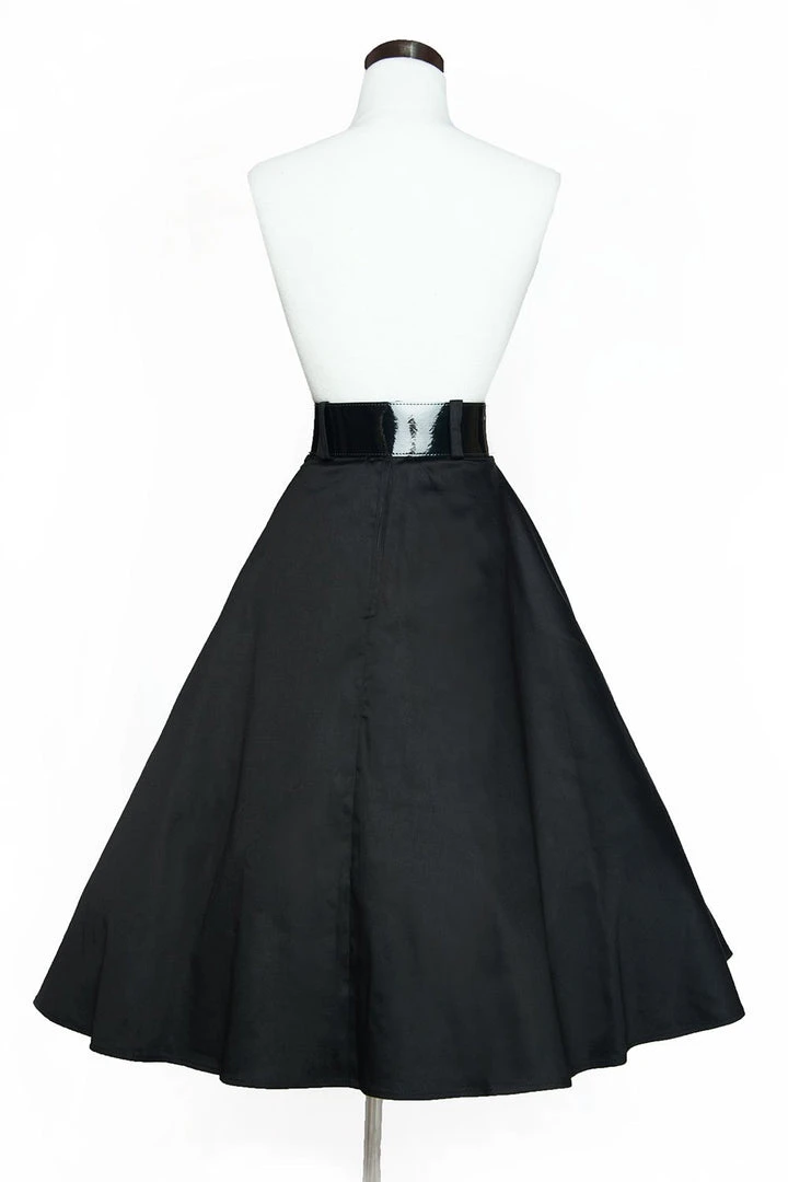 The Doris skirt is a elegant swing skirt with a full sweep and no gathers or pleats. However, it’s the 21st century, so this skirt has deep pockets. Designed as a callback to the true circle skirts of the 1950’s, It has a nipped in waistband, a back zipper, pockets, and loops for a wide belt. Made from the highest quality, heavyweight cotton sateen. If you’re looking for that added oomph under, we suggest our Twill Underskirt.
