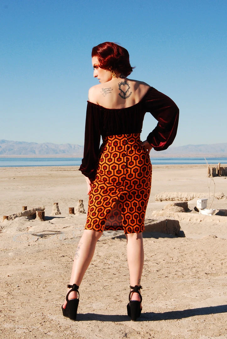 This sexy, curve-hugging skirt has a high waist with a 2″ wide curved yoke and a provocative 10″ back slit and is finished off with a back zip. Made from a high quality cotton sateen.