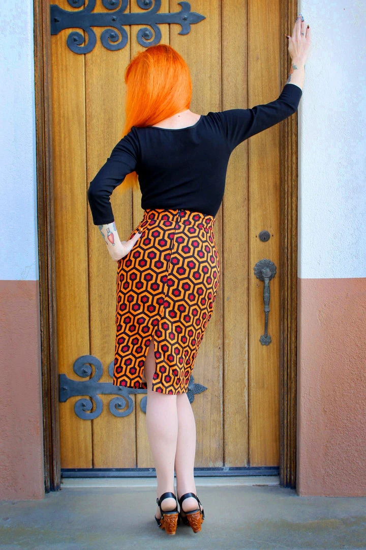 This sexy, curve-hugging skirt has a high waist with a 2″ wide curved yoke and a provocative 10″ back slit and is finished off with a back zip. Made from a high quality cotton sateen.
