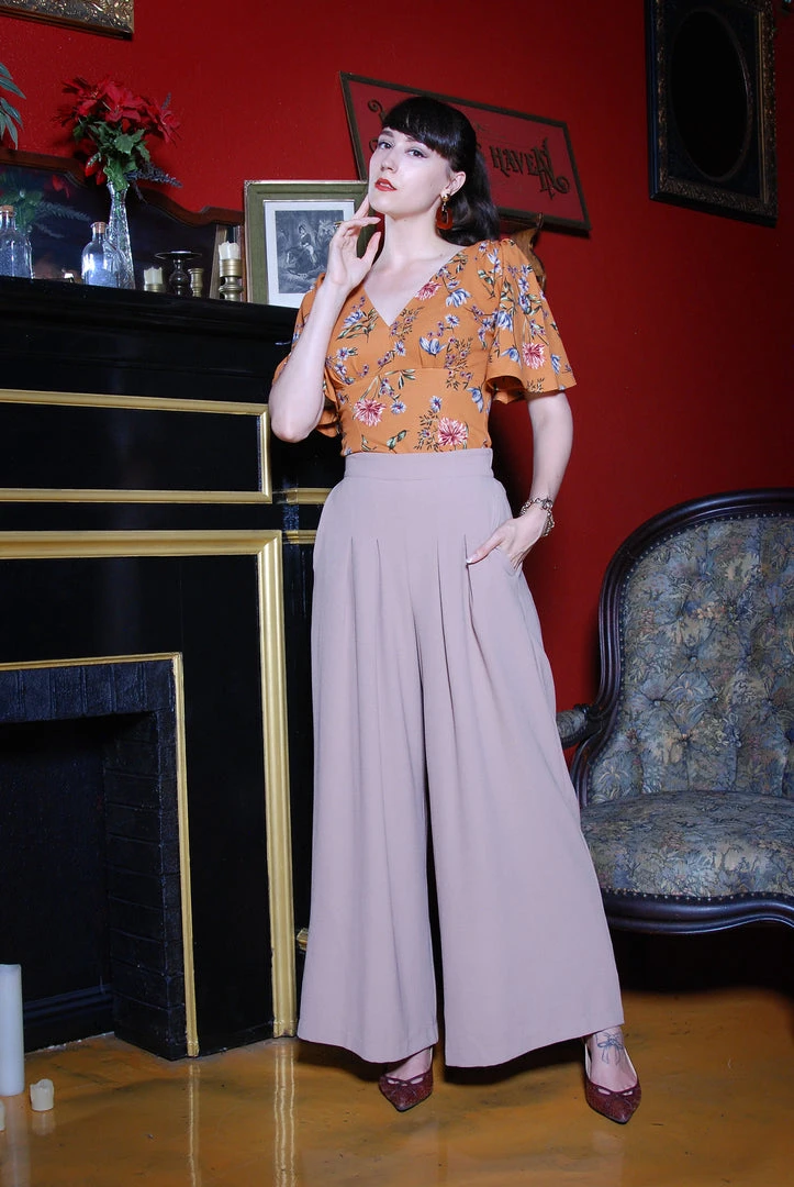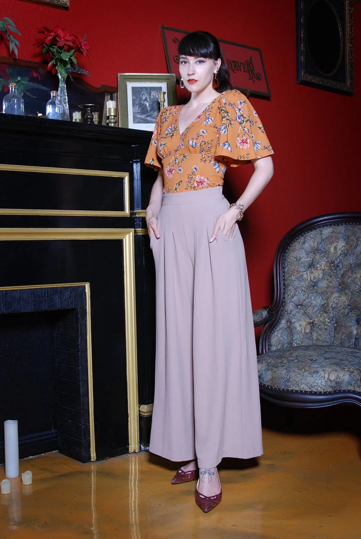A triumph of graceful beauty, the Viva Blouse takes the sleek clean lines of the 1940s and transforms them into elegance that enchants and enhances beyond compare. Made with a poly/spandex stretch pebble crepe fabric, this dreamy design features wide fluttering bell sleeves, and a dramatic V-neckline accentuated by gathers under the bust. Lined in the bodice in comfortable jersey knit fabric. Back zip.