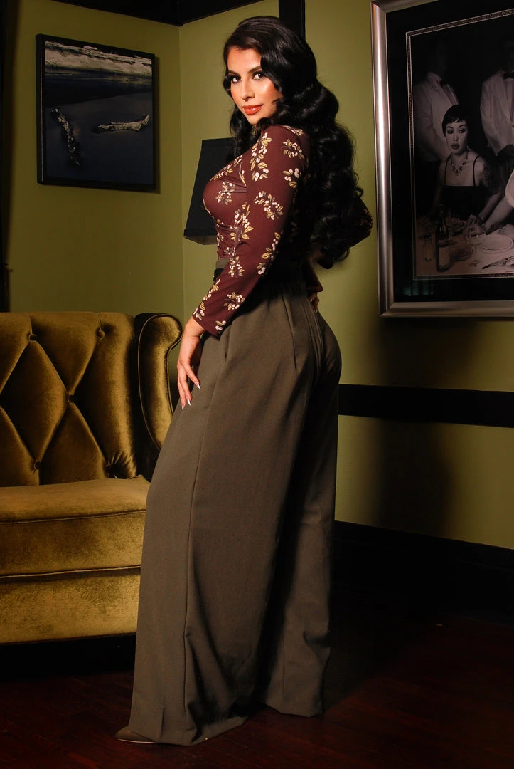 A perennial customer favorite due to the beautiful fit and silhouette they provide coupled with unparalleled comfort, these wide leg vintage inspired palazzo pants are made from a high quality poly/spandex stretch pebble crepe that drapes beautifully from tailored pleats. The waistband has elastic at back (on either side of the zipper) for a snug, yet comfortable fit at the waist, and there are deep side pockets. Fully lined. Choose from two inseams – 30″ or 32″