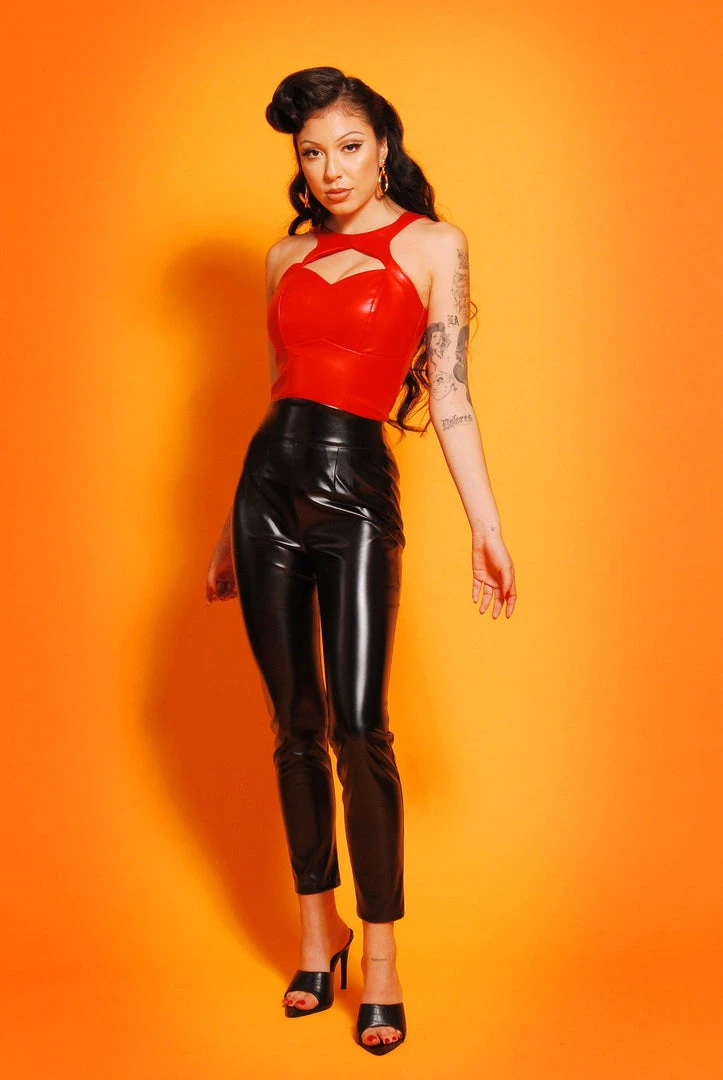 Damnit, Janet, who gave you permission to look this good? Made from our figure hugging stretch faux leather, this top zips at the back for comfort and ease, and has a cheeky cutout at the bust to create a neckline that screams Leader of the Pack. Mix and match with your favorite faux leather pieces for a head-to-toe HBIC vibes like our Deadly Dominatrix Faux Leather Gloves and Witch Please Pointed Toe Mules.